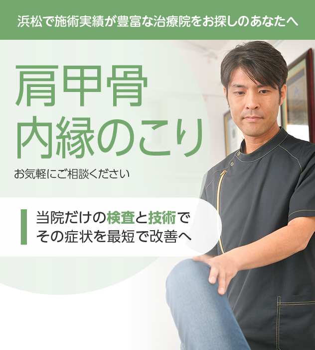 変化を見逃さない一貫性が治療効果を高め、それが当院の豊富な改善実績に繋がっています。なかなか改善しない肩甲骨内縁のこりも当院にお任せください